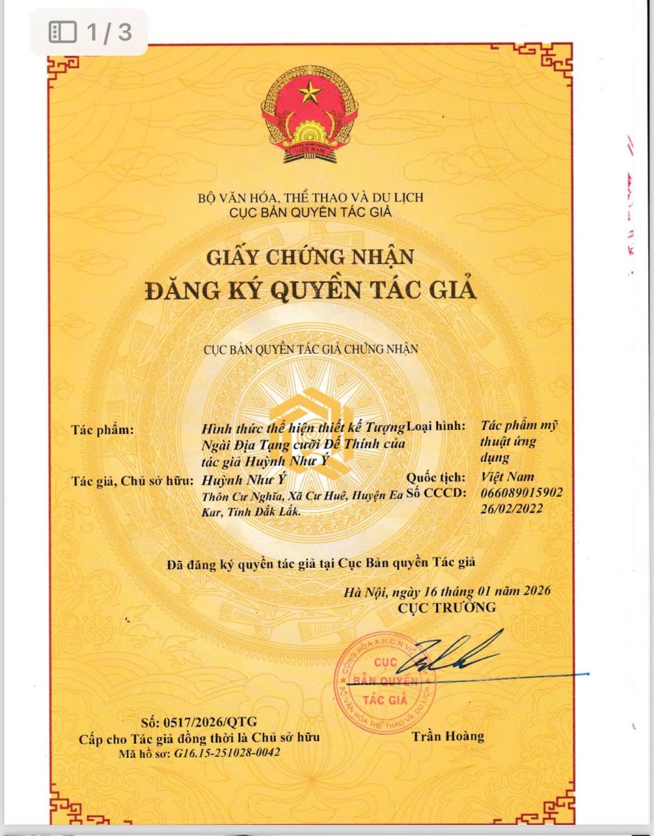 Bản Quyền bảo vệ Tác Phẩm Nghệ Thuật : Ngài Địa Tạng Vương cưỡi đế thính